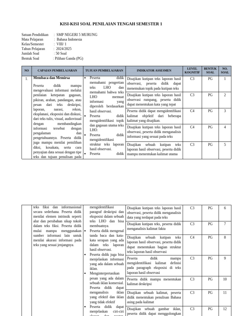 Kisi-kisi soal adalah kerangka acuan yang digunakan untuk menyusun soal ujian, memastikan bahwa soal-soal yang dibuat memiliki validitas isi dan konsistensi dengan tujuan pembelajaran yang telah ditetapkan. Artikel ini akan membahas secara mendalam pentingnya kisi-kisi soal dalam KTSP, memberikan contoh kisi-kisi soal Bahasa Indonesia untuk Kelas 8 Semester 2, serta menjelaskan setiap komponennya agar para pendidik dapat menyusun alat ukur yang akurat dan relevan.