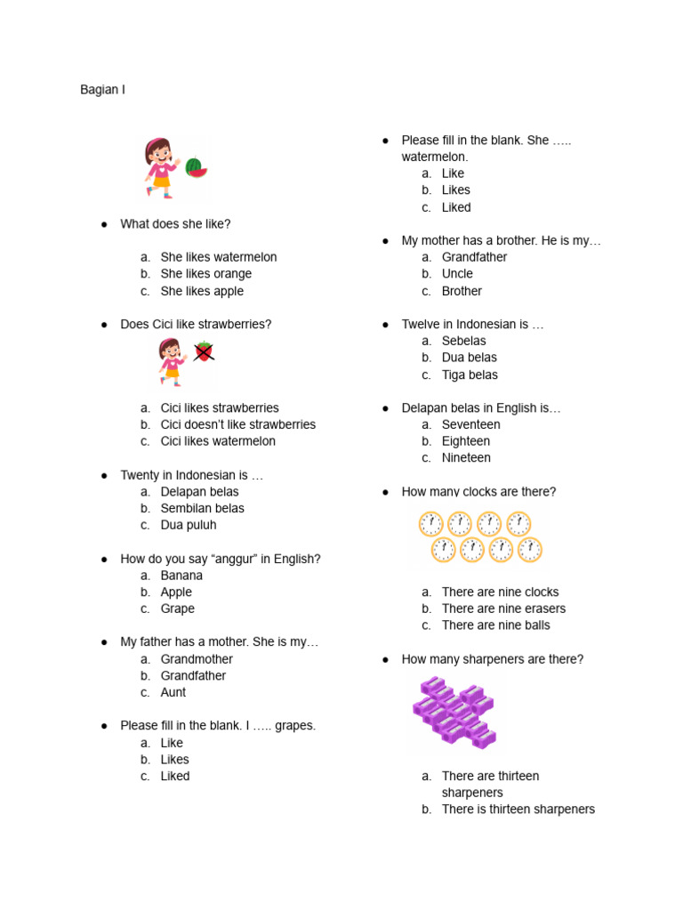 - Gunakan Bahasa yang Jelas dan Sederhana: Sesuaikan dengan tingkat pemahaman siswa kelas 2 SD. Hindari kalimat ambigu.